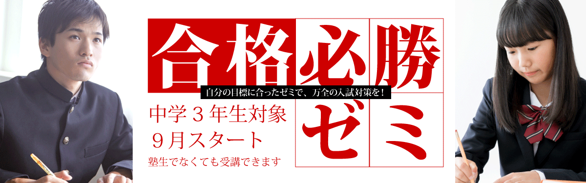 公立高校入試対策を中心に、重要単元の必須事項の完全マスターを目指し、問題演習に取り組んでいきます。入試本番で得点したい問題を確実に正解するトレーニングをテスト形式の演習を通して行います。また、全国の公立高校の入試問題を題材とし、志望校合格のための解法スキルのレベルアップにも取り組みます。