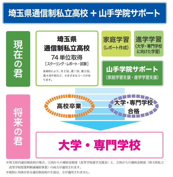 埼玉県通信制高校+山手学院サポートの場合(中3・高校生対象)